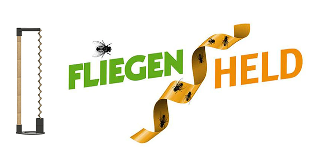 Mobile Halterung für alle gängigen Fliegen-Klebestreifen.